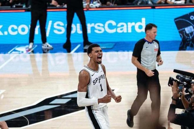 屬于文班亞馬的時代,似乎已經(jīng)開啟了。不過,對于外界的這種吹捧,阿德巴約卻有不同的意見。在接受采訪時他表示:“NBA中可不只有文班亞馬一個大個子球員。”而且阿德巴約不只是嘴上說說,熱火和馬刺隊的比賽開始后,他就狀態(tài)拉滿。持球底線突破,一步過掉了文班亞馬。但文班亞馬靠著極致的天賦一腳地板油跟了上來,準備大帽阿德巴約。但后者直接旱地拔蔥強硬起飛,隔扣文班亞馬!觀感炸裂,不禁惹得現(xiàn)場馬刺球迷一陣驚呼。說起來,阿德巴約今天確實夠出色,絕對是本賽季五場比賽以來,唯一一個能和文班亞馬打的有來有回的球員,全場31分10籃板3助攻1搶斷1封蓋。